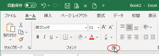 - [ホーム]タブのフォントグループにあるダイアログボックス起動ツールをクリックします。